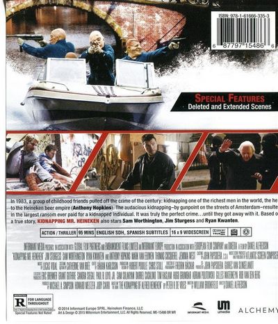 Kidnapping Mr. Heineken contains the following deleted scenes (1080p): Money Trouble (0:51), Are You Alright? (1:22), You Guys Need a Break? (0:51), Sleep (0:51), American Beer (0:42), and Waiting (0:46). Also included are trailers (1080p) for Kidnapping Mr. Heineken, The Humbling, Good People, By the Gun, and The World Made Straight. |