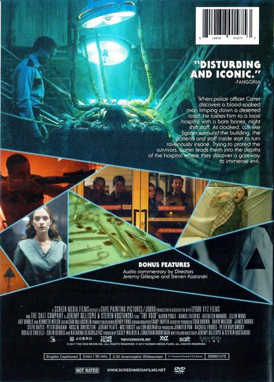 When police officer Carter (Aaron Poole) discovers a blood-soaked man limping down a deserted road, he rushes him to a local hospital with a barebones, night shift staff. As cloaked, cult-like figures surround the building, the patients and staff inside start to turn ravenously insane. Trying to protect the survivors, Carter leads them into the depths of the hospital where they discover a gateway to immense evil. |