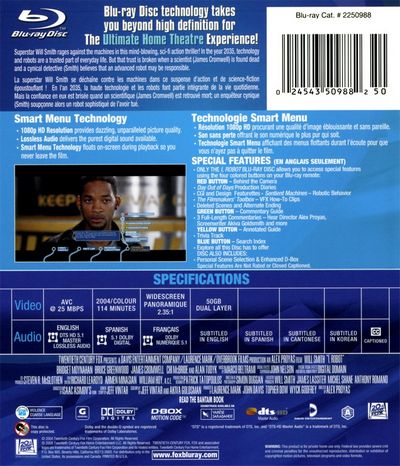 Superstar Will Smith rages against the machines in this mind-blowing, sci-fi action thriller! In the year 2035, technology and robots are a trusted part of everyday life. But that trust is broken when a scientist (James Cromwell) is found dead and a cynical detective (Smith) believes that an advanced robot may be responsible.La superstar Will Smith se déchaîne contre les machines dans ce suspense d’action et de science-fiction époustouflant! En l’an 2035, la haute technologie et les robots font partie intégrante de la vie quotidienne. Mais la confiance en eux est brisée quand un scientifique (James Cromwell) est retrouvé mort; un enquêteur cynique (Smith) soupçonne alors un robot sophistiqué de l’avoir tué. |