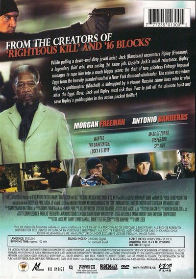 While pullin a down and dirty jewel heist, Jack (Banderas) encouters Ripley (Freeman), a legendary thief who was casing the same job. Despite Jack's initial reluctance, Ripley manages to rope him into a much bigger score; the theft of two priceless Faberge Imperial Eggs from the heavily guarded vault of a New York diamond wholesaler, The stakes rise when Ripley's goddaughter (Mitchell) is kidnapped by a vicious Russian crime boss who is also after the Eggs, Now, Jack and Ripley must rick their lives to pull off the ultimate heist and save Ripley's goddaughter in this action packed thriller!