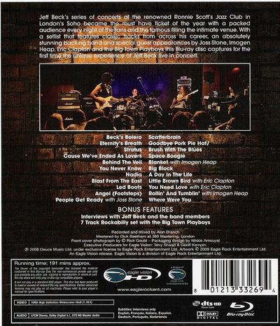 Reviewed by Dr. Svet Atanasov, March 25, 2009In November of 2007, legendary guitarist Jeff Beck took on the stage of London’s Ronnie Scott’s, a notorious jazz club with a rich history. Unfortunately, given the size of the venue, only a few were lucky enough to see him and his band - Vinnie Colaiuta (drums), Jason Rebello (keyboards) and Tal Wilkenfeld (bass) - perform. This Blu-ray disc offers twenty one songs that were played by Beck and his band throughout the course of the concert. They cover a variety of genres including rock, jazz, blues, fusion, and even rockabilly. To the delight of the audience, during a few of the songs, Beck was also joined by Joss Stone, Imogen Heap as well as his former Yardbird’s bandmate Eric ClaptonWhat truly impresses in this show is the musical versatility Beck and his band showcase. They easily skip through a number of different genres that have been a key part of their music throughout the years (interestingly enough, even though Beck has been performing with Vinnie Colaiuta and Jason Robello for only a few years now, they very much sound as if they have been together for a very, very long time). Unsurprisingly, from the moody Pink Floyd-esque Cause We’ve Ended as Lovers (with a fantastic solo by Tal Wilkenfeld) to the to the funky Led Boots, to the classic People Get Ready with Joss Stone , to the terrific new arrangement of Blnaket with Imogen Heap, to the outstanding Little Brown Bird and You Need Love with Eric Clapton, this concert offers a little bit of everything for everyone. Technically, Jeff Beck performing this week…Live at Ronnie Scott’s is also a terrifically put together project. As revealed by Beck in the long interview offered on this Blu-ray disc, plenty of adjustments had to be done so that a number of acoustic limitations which Ronnie Scott’s presented, mostly due to the size of the venue, are dealt with adequately. Fortunately enough, the final product is simply fantastic.The concert was also recorded with a number of strategically positioned HD cameras that allow us to not only follow the musicians on the stage but see the reactions of the thrilled audience as well. For example, Beck’s long solos during the first half of the concert are recorded as if he is simply practicing alone, somewhere where no one could see him. On other hand, when his guests begin appearing on the stage during the second half of the concert, the camera spends much more time following the musicians from afar, thus making it very easy for us to see how they interact with each other.