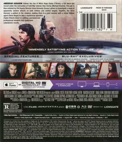 American Assassin follows the rise of Mitch Rapp (Dylan O'Brien), a CIA black-ops recruit under the instruction of Cold War veteran Stan Hurley (Michael Keaton). The pair is then enlisted by CIA Deputy Director Irene Kennedy (Sanaa Lathan) to investigate a wave of apparently random attacks on both military and civilan targets. Together, the three discover a pattern in the violence, leading them to a joint mission with a lethal Turkish agent (Shiva Negar) to stop a mysterious operative (Taylor Kitsch) intent on settling a personal and professional vendetta that could have cataclysmic results. |
