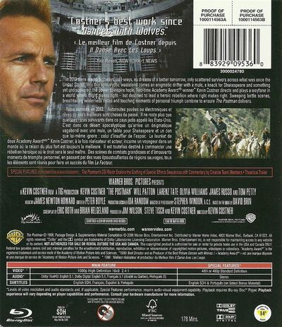 In 2013 there are no highways, no I-ways, no dreams of a better tomorrow, only scattered survivors across what was once the United States.Into this apocalyptic wasteland comes an enigmatic drifter with a mule, a knack for Shakespeare and something yet undiscovered; the power to inspire hope.Two-time Acedemy Award Winner Kevin Costner directs and plays a wayfarer in a world where might makes right - but destined to lead a heroic rebillion where right makes right.Sweeping battle scenes, breathtaking wilderness vistas and touching moments of personal triumph combine to ensure The Postman delivers. |