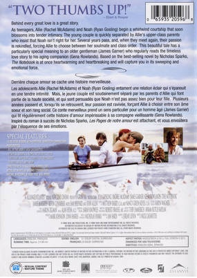 Behind every great love is a great story.As teenagers, Allie (Rachel McAdams) and Noah (Ryan Gosling) begin a whirlwind courtship that soon blossoms into tender intimacy. The young couple is quickly separated by Allie's upper class parents who insist that Noah isn't right for her. Several years pass, and, when they meet again, their passion is rekindled, forcing Allie to choose between her soul mate and class order. This beautiful tale has a particularly special meaning to an older gentleman (James Garner) who regularly reads the timeless love story to his aging companion (Gena Rowlands).Based on the best-selling novel by Nicholas Sparks, The Notebook is at once heartwarming and heartbreaking and will capture you in its sweeping and emotional force. |