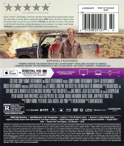 Oscar® winner* Jeff Bridges, Chris Pine, and Ben Foster lead this acclaimed action-drama from the writer of Sicario. When a desperate father (PINE) learns the bank is going to take his family's land, he and his ex-con brother (FOSTER) are left with no choice. They decide to rob the bank's branches, putting themselves in the crosshairs of an aging Ranger (BRIDGES) in a riveting story of crime, punishment, and brotherly love. *2009, Actor in a Leading Role, Crazy Heart. |