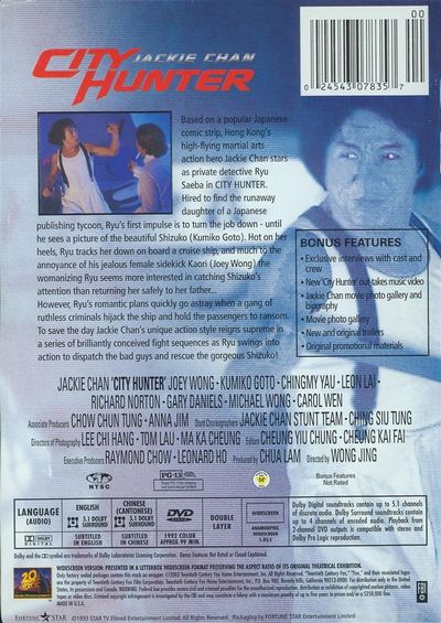Based on a popular Japanese comic strip, Hong Kong's high-flying martial arts action hero Jackie Chan stars as private Ryu Saeba in City Hunter. Hired to find the runaway daughter of a Japanese publishing tycoon, Ryu's first impulse is to turn the job down - until he sees a picture of the beautiful Shizuko (Kumiko Goto). Hot on her heels, Ryu tracks her down on board a cruise ship, and much to the annoyance of his jealous female sidekick Kaori (Joey Wong) the womanizing Ryu seems more interested in catching Shizuko's attention than returning her safely to her father. However, Ryu's romantic plans quickly go astray when a gang of ruthless criminals hijack the ship and hold the passengers to ransom. To save the day Jackie Chan's unique action style reigns supreme in a series of brilliantly conceived fight sequences as Ryu swings into action to dispatch the bad guys and rescue the goergeous Shizuko!
