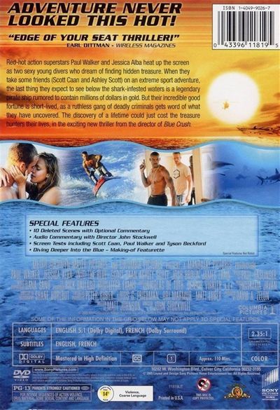 Red-hot action superstars Paul Walker and Jessica Alba heat up the screen as two sexy young divers who dream of finding hidden treasure. When they take some friends (Scott Caan and Ashley Scott) on an extreme sport adventure, the last thing they expect to see below the shark-infested waters is a legendary pirate ship rumored to contain millions of dollars in gold. But their incredible good fortune is short-lived, as a ruthless gang of deadly criminals gets word of what they have uncovered. The discovery of a lifetime could just cost the treasure hunters their lives, in the exciting new thriller from the director of Blue Crush. |