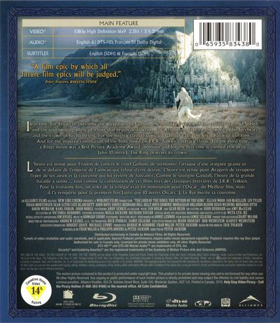 "A film epic by which all future film epics will be judged." - Peter Travers, ROLLING STONEIt is time. For Frodo to overcome the wickedness of Gollum, the horrifying attack of the colossal arachnid Shelob and the soul-twisting allure of a ring that resists destruction. For Aragon to take up the sword of his forebearers and the crown of his birthright. For the mighty clash that wizard Gandalf calls "the great battle of our time." And for the inspired culmination of the films based on J.R.R. Tolkien's literary classic. For the third time, a Rings movie was a Best Picture Academy Award nominee and for the first time it claimed that prize (plus 10 more). The King deserves its crown.