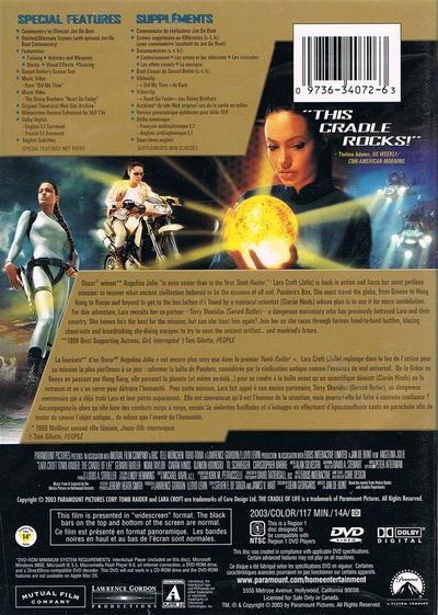 Ocscar winner Angelina Jolie "is even sexier than in the first Tomb Raider." Lara Croft (Jolie) is back in action and faces her most perilous mission: to recover what ancient civilization believed to be the essence of all evil, Pandora's Box. She must travel the globe, from Greece to Hong Kong to Kenya and beyond to get to the box before it's found by a maniacal scientist (Ciaran Hinds) whose plan is to use its for mass annihilation. For this adventure, Lara recruits her ex-partner - Terry Sheridan (Gerard Butler) - a dangerous mercenary who has previously betrayed Lara and their country. She knows he's the best for the mission, but can she trust him again? Join her as she races through furious hand-to-hand battles, blazing shoot-outs and breakthtaking sky-diving escapes to try to save the ancient artifact... and mankind's furture.