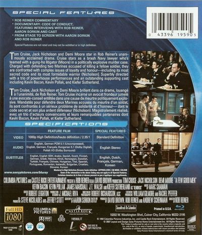 Tom Cruise, Jack Nicholson and Demi Moore star in Rob Reiner's unanimously acclaimed drama. Cruise stars as a brash Navy lawyer who's teamed with a gung-ho litigator (Moore) in a politically explosive murder case. Charged with defending two Marines accused of killing a fellow soldier, they are confronted with complex issues of loyalty and honor - including its most sacred code and its most formidable warrior (Nicholson). Superbly directed with a trio of powerhouse performances and an outstanding supporting cast including Kevin Pollak, Kiefer Sutherland and Kevin Bacon. |