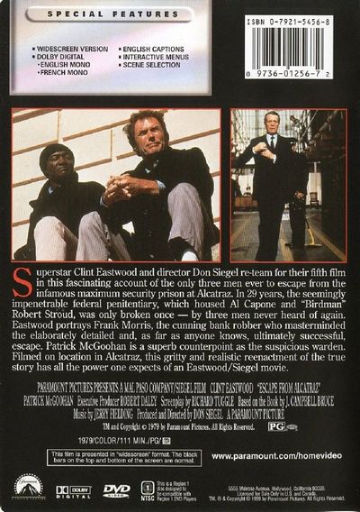 Superstar Clint Eastwood and director Don Siegel re-team for their fifth film in this fascinating account of the only three men ever to escape from the infamous maximum security prison at Alcatraz. In 29 Years, the seemingly impenetrable federal penitentiary, which housed Al Capone and "Birdman" Robert Stroud, was only broken once – by three men never heard of again. Eastwood portrays Frank Morris, the cunning bank robber who masterminded the elaborately detailed and, as far as anyone knows, ultimately successful, escape. Patrick McGoohan is a superb counterpoint as the suspicious warden. Filmed on location in Alcatraz, this gritty and realistic reenactment of the true story has all the power one expects of an Eastwood/Siegel movie. |