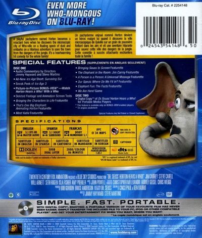 A playful pachyderm named Horton becomes a reluctant hero when he discovers the microscopic city of Who-ville on a floating speck of dust and embarks on a hilarious adventure to save the town from the dangers of the jungle. It's a heartwarming hit comedy for the whole family! |