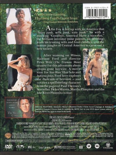 How far should a man go to find his dream? Allie Fox went to the Mosquito Coast. He went too far.Allie Fox is fed up with an America that "buys junk, sells junk, eats junk." So with a mocking "Goodbye, America! Have a nice day," the brilliant inventor (nine patents, six pending) leads his trusting wife and four children into the remote jungles of Central America to carve out a new society.After teaming up on Witness, Harrison Ford and director Peter Weir (The Truman Show) reunite for this adventure about utopia gone haywire. A movie icon for Star Wars' Han Solo and Indiana Jones, Ford here explores the dark side of heroism - and creates a spellbinding character from the pages of Paul Theroux's bestseller. Helen Mirren, Martha Plimpton and the late River Phoenix co-star.