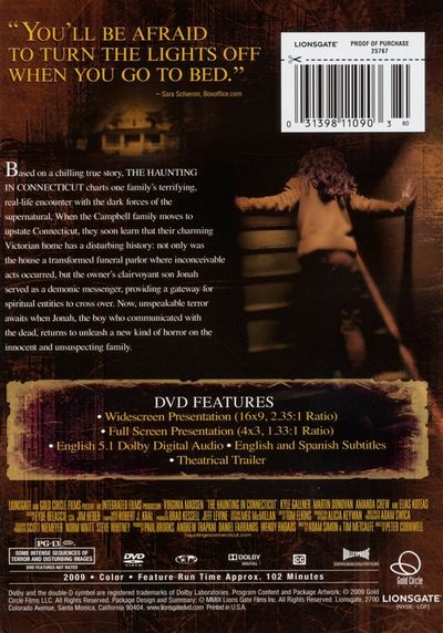 Based On True EventsBased on a chilling true story, THE HAUNTING IN CONNECTICUT charts one family's terrifying, real-life encounter with the dark forces of the supernatural. When the Campbell family moves to upstate Connecticut, they soon learn that their charming Victorian home has a disturbing history: not only was the house a transformed funeral parlor where inconceivable acts occurred, but the owner's clairvoyant son Jonah served as a demonic messenger, providing a gateway for spiritual entities to cross over. Now, unspeakable terror awaits when Jonah, the boy who communicated with the dead, returns to unleash a new kind of horror on the innocent and unsuspecting family. |