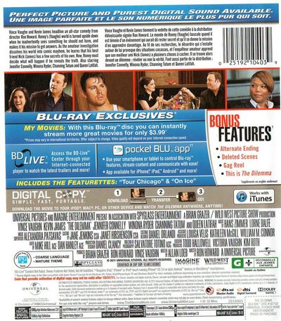 Vince Vaughn and Kenvin James headline an all-star comedy from director Ron Howard. Ronn'y (Vaughn) world is turned upside down when he inadvertently sees something he should not have, and makes it his mission to get answers. As the amateur investigation dissolves his world into comic mayhem, he learns that his best friend Nick (James) has a few secrets of his own. Now, Ronny must decide what will happen if he reveals the truth. Also starring Jennifer Connelly, Winona Ryder, Channing Tatus, and Queen Latifah. |