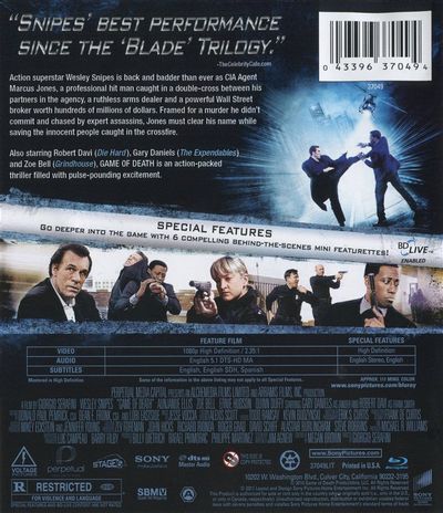 Action superstar Wesley Snipes is back and badder than ever as CIA Agent Marcus Jones, a professional hit man caught in a double-cross between his partners in the agency, a ruthless arms dealer and a powerful Wall Street broker worth hundreds of millions of dollars. Framed for a murder he didn't commit and chased by expert assassins, Jones must clear his name while saving innocent people caught in the crossfire.Also starring Robert Davi (Die Hard), Gary Daniels (The Expendables) and Zoe Bell (Grindhouse), Game of Death is an action-packed thriller with pulse-pounding excitement. |