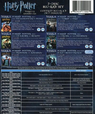 Year 1: Harry Potter and the Philospher's StoneAnnée 1 : Harry Potter à l'école des sorciersYear 2: Harry Potter and the Chamber of SecretsAnnée 2 : Harry Potter et la Chambre des secretsYear 3: Harry Potter and the Prisoner of AzkabanAnnée 3 : Harry Potter et le Prisonnier d'AzkabanYear 4: Harry Potter and the Goblet of FireAnnée 4 : Harry Potter et la Coupe de feuYear 5: Harry Potter and the Order of the PhoenixAnnée 5 : Harry Potter et l'Ordre du phénixYear 6: Harry Potter and the Half-Blood PrinceAnnée 6 : Harry Potter et le Prince de sang-mêlé |
