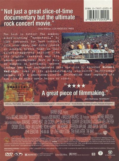3 DAYS OF PEACE & MUSICThe best is better! The Academy Award®-winning† "Woodstock," by wide consensus the best concert film ever made, has never looked or sounded better than in this director-approved edition with its sights restored and its sounds revitalized. Best of all, 40 minutes of previously unseen footage has been incorporated into the film by director 'Michael Wadleigh'. Seen in its ground-breaking widescreen multi-image format, it's a once-in-a-lifetime celebration that captured its era like no other movie before or since.†1970: Best Documentary Feature. |