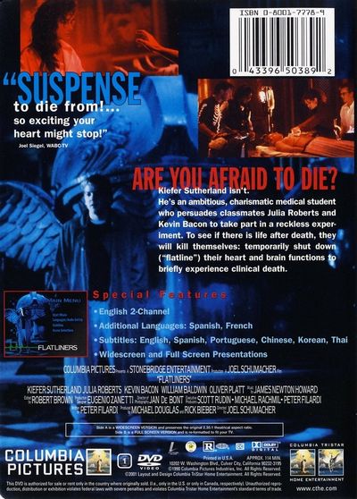 Some lines shouldn't be crossed.Medical students begin to explore the realm of near death experiences, hoping for insights. Each has their heart stopped and is revived. They begin having flashes of walking nightmares from their childhood, reflecting sins they committed or had committed against them. The experiences continue to intensify, and they begin to be physically beaten by their visions as they try and go deeper into the death experience to find a cure. |