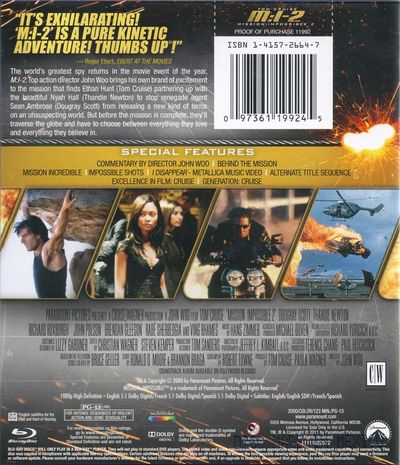 The world's greatest spy returns in the movie event of the year, M:I-2. Top action director John Woo brings his own brand of excitement to the mission that finds Ethan Hunt (Tom Cruise) partnering up with the beautiful Nyah Hall (Thandie Newton) to stop renegade agent Sean Ambrose (Dougray Scott) from releasing a new kind of terror on an unsuspecting world. But before the mission is complete, they'll traverse the globe and have to choose between everything they love and everything they believe in. |