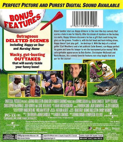 Adam Sandler stars as Happy Gilmore in this over-the-top comedy that scores a hole in one for hilarity. After his dream of stardom on the hockey ice melts, Happy Gilmore discovers he has a gift that could bring him glory on the greens. Trouble is, with his hot head and hard-hitting drives, Happy doesn't just play golf . . . he destroys it. With the help of a retired golfer (Carl Weathers) and a hot publicist (Julie Bowen), can Happy perfect his game and tame his temper to win the tournament prize money? With unforgettable appearances by Bob Barker, Christopher McDonald and Kevin Nealon, this comedy favorite features non-stop laughs that are par for the course! |