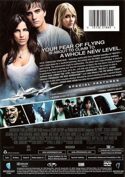 YOUR FEAR OF FLYING IS ABOUT TO CLIMB TO A WHOLE NEW LEVEL.FIVE TEENAGE FRIENDS – including rookie pilot Sara (Jessica Lowndes of "90210") – rent a small plane for a weekend getaway. But shortly into the flight, something suddenly goes wrong. The instruments begin to malfunction. The plane won't stop climbing. A storm is closing in and fuel is running out. Now for everyone on board, the true horror has just begun: A mysterious force wants them all to die...and only one of them has the power to stop it. Julianna Guill (FRIDAY THE 13TH), Ryan Donowho (BANDSLAM, "THE O.C."), Landon Liboiron ("DEGRASSI: THE NEXT GENERATION") and Jake Weary ("AS THE WORLD TURNS") co-star in this white-knuckle shocker directed by award-winning graphic novelist Kaare Andres (SPIDER-MAN: REIGN) that takes the supernatural to terrifying new heights.