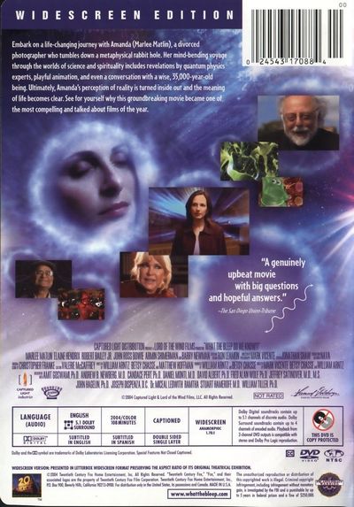 Science and spirituality come together in this mind-bending trip down the rabbit hole.Embark on a life-changing journey with Amanda (Marlee Matlin), a divorced photographer who tumbles down a metaphysical rabbit hole. Her mind-bending voyage through the worlds of science and spirituality includes revelations by quantum physics experts, playful animation, and even a conversation with a wise, 35,000 year-old being. Ultimately, Amanda's perception of reality is turned inside out and the meaning of life becomes clear. See for yourself why this groundbreaking movie became one of the most compelling and talked about films of the year. |