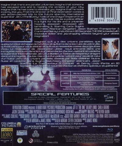 Imagine that there are parallel universes. Imagine that someone has escaped one and is roaming the streets of your city, imagine that he has come to eliminate you. Imagine that he looks exactly like you. From the director of Final Destination comes a wild, action-packed trip to the future starring international superstar Jet Li (The Mummy: tom of the Dragon Emperor) in an incredible dual role as a police oficer in a fight for his life and a universehopping assassin obsessed with terminating it. Starring Carla Gugino (Watchmen, American Gangster), Jason Stratham (Transporter 3, Crank) and Delroy Lindo (Gone in 60 Seconds). The One is loaded with explosive action and jaw-dropping effects beyond your wildest imagination! |
