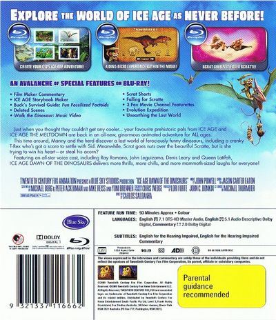 Just when you thought they couldn't get any cooler... Your favourite prehistoric pals from Ice Age and Ice Age The Meltdown are back with an all-new, ginormous animated adventure for all.This time around, Manny and the herd discover a lost world of ferociously funny dinosaurs, including a cranky T-Rex who's got a score to settle with Sid. Meanwhile, Scrat goes nuts over the beautiful Scratte, but is she trying to win his heart - or steal his acorn?Featuring an all-star voice cast including Ray Romano, John Leguizamo, Denis Leary and Queen Latifah, Ice Age Dawn of the Dinosaurs delivers more thrills, more chills, and more mammoth-sized laughs for everyone! |
