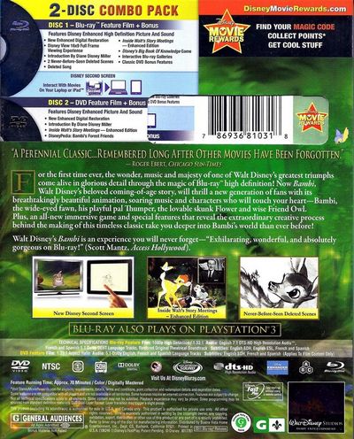 For the first time ever, the wonder, music and majesty of one of Walt Disney's greatest triumphs comes alive in glorious detail through the magic of Blu-ray high definition! Now Bambi, Walt Disney's beloved coming-of-age story, will thrill a new generation of fans with its breathtakingly beautiful animation, soaring music and characters who will touch your heart-Bambi, the wide-eyed fawn, his playful pal Thumper, the loveable skunk Flower and wise Friend Owl. Plus, all-new immersive game and special features that reveal the extraordinary creative process behind the making of this timeless classic take you deeper into Bambi's world than ever before!Walt Disney's Bambi is an experience you will never forget – "Exhilarating, wonderful, and absolutely gorgeous on Blu-ray!" (Scott Mantz, Access Hollywood). |