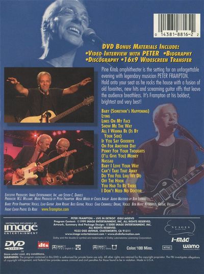 Pine Knob Amphitheater is the setting for an unforgettable evening with legendary musician Peter Frampton. Hold onto your seat as he rocks the house with a fusion of old favorites, new hits and screaming guitar riffs that leave the audience breathless. It's Frampton at his boldest, brightest and very best! Baby (Somethin's Happening) Lying Lines On My FaceShow Me The Way All I Wanna Be (Is By Your Side)If You Say Goodbye Oh For Another Day Penny For Your Thoughts(I'll Give You) Money Nassau Baby I Love Your Way Can't Take That Away Do You Feel Like We Do? Off The Hook You Had To Be There I Don't Need No Doctor