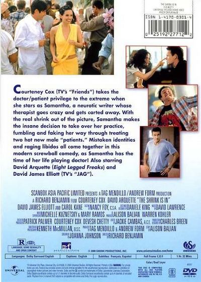 Courteney Cox (TV's "Friends") takes the doctor/patient privilege to the extreme when she stars as Samantha, a neurotic writer whose therapist goes crazy and gets carted away. With the real shrink out of the picture, Samantha makes the insane decision to take over her practice fumbling and faking her way through treating two hot new male "patients." Mistaken identities and raging libidos all come together in this modern screwball comedy, as Samantha has the time of her life playing doctor! Also starring David Arquette (Eight Legged Freaks) and David James Elliott (TV's "JAG"). |