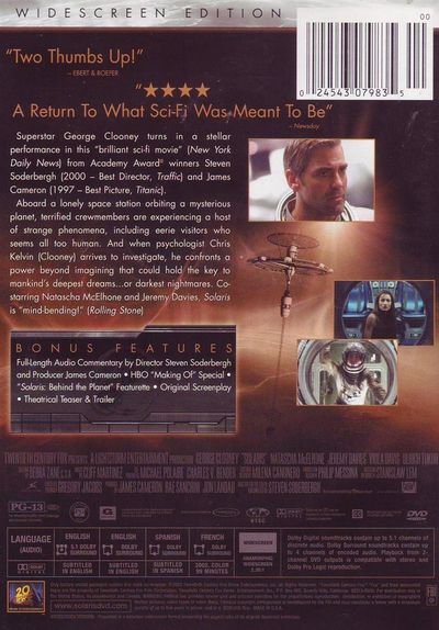 Superstar George Clooney turns in a stellar performance in this "brilliant sci-fi movie" (New York Daily News) from Academy Award winners Steven Soderbergh (2000 - Best Director, Traffic) and JamesCameron (1997 - Best Picture, Titanic). Aboard a lonely space station orbiting a mysterious planet, terrified crew members are experiencing a host of strange phenomena, including eerie visitors who seem all too human. And when psychologist Chris Kelvin (Clooney) arrives to investigate, he confronts a power beyond imagining that could hold the key to mankind's deepest dreams... or darkest nightmares. Co-starring Natascha McElhone and Jeremy Davies