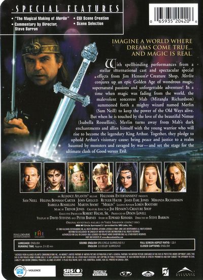 In a time long past, when magic was fading from the world of men, the malevolent sourceress Mab (Miranda Richardson) summoned forth a mighty wizard to keep the power of the Old Ways alive. The wizard's name... was Merlin (Sam Neill). But when his heart is touched by the love of the beautiful Nimue (Isabella Rossellini), Merlin turns away from Mab's dark enchantments. Allying himself with the young warrior who will rise to become the legendary King Arthur, Merlin pledges his mystic skills to Arthur's visionary cause: bringing peace and justice to the realm haunted by monsters and ravaged by war- and setting the stage for the ultimate clash of Good versus Evil. With spellbinding performances from a stellar international cast and spectacular special effects from Jim Henson's Creature Shop, Merlin conjures up an epic Golden Age of wondrous magic, supernatural passions and unforgettable adventure!