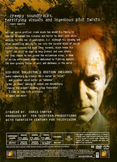 After ten years as an FBI profiler, Frank Black relocates from Washington to his hometown Seattle with his wife, Catherine, and their daughter, Jordan. However, a series of sexual homicides coaxes him from retirement. He offers his support to Lt. Bob Bletcher, a former colleague with Seattle's Homicide Unit, and is in turn offered the resources of the mysterious Millennium Group, a corps of former law enforcement officers. Blessed - or afflicted - with an uncanny ability enabling him to see the world through the killer's eyes, Frank must pursue the murderer through Seattle's underground scene and stop his killing spree.