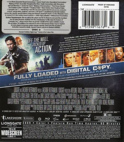 Gerard Butler stars as Kable, condemned criminal and globally famous super-soldier in the ultimate multiplayer game, Slayers. Human controllers direct each thought and move of real-life prison inmates battling in hyper-intense environments - where the goal is freedom and the penalty is death. But when Kable suddenly decides he wants out, his rebellion threatens the twisted plans of game creator Ken Castle (Michael C. Hall, TV's Dexter) who will stop at nothing to crush the renegade commando in this taut, adrenaline-packed action-thriller. |