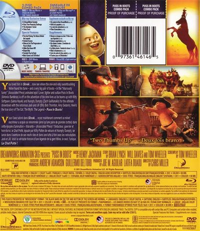 You loved him in Shrek... now see where the one-and-only swashbuckling feline found his fame - and a very big pair of boots - in the "hilariously funny" (Associated Press) animated epic! Lover, fighter and outlaw Puss In Boots (Antonio Banderas) is off on the adventure of his nine lives as he teams up with Kitty Softpaws (Selma Hayek) and Humpty Dumpty (Zach Galifianakis) for the ultimate showdown with the notorious Jack and Jill (Billy Bob Thornton, Amy Sedaris). Here's the true story of The Cat, The Myth, The Legend - Puss In Boots! |