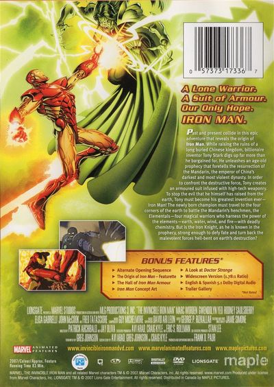 A Lone Warrior. A Suit of Armor. Our Only Hope. Iron Man.Past and present collide in this epic adventure that reveals the origin of Iron Man. While raising the ruins of a long buried Chinese kingdom, billionaire inventor Tony Stark digs up far more than he bargained for. He unleashes an age-old prophecy that foretells the resurrection of the Mandarin, the emperor of China's darkest and most violent dynasty. In order to confront the destructive force, Tony creates an armored suit infused with high-tech weaponry. To stop the evil that he himself has raised form the earth, Tony must become his greatest invention ever - Iron Man! The newly born champion must travel to the four corners of the earth to battle the Mandarin's henchmen, the Elementals - four magical warriors who harness the power of the elements - earth, water, wind, and fire - with deadly chemistry. But is the Iron Knight, as he his known in the prophecy, strong enough to defy fate and turn back the malevolent forces hell-bent on earth's destruction?