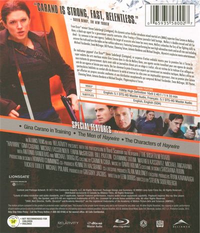 From Oscar® winner Steven Soderbergh (Contagion), this dynamic action thriller introduces mixed martial acts (MMA) superstar Gina Carano os Mallory Kane, a black ops agent for a government security contractor. After freeing a Chinese journalist held hostage, Mallory is double-crossed and left for dead - by someone in her own agency. Suddenly the target of assassins who know her every move, Mallory unleashes the fury of her fighting skills to uncover the truth and turn the tables on her ruthless adversary. Featuring Carano performing her own high-adrenaline stunts and an all-star cast including Michael Fassbender, Ewan McGregor, Bill Paxton, Channing Tatum, Antonio Banderas and Michael Douglas, Haywire is explosive movie entertainment.Du réalisateur gagnant d'un Oscar(md) Steven Soderbergh (Contagion), ce suspense d'action endiablé montre pour le première fois à l'écran la super vedette des arts martiaux mixtes Gina Carano dans le rôle de Mallory Kane. une agente secrète travaillant pour une agence de sécurité sous-traitante du gouvernement. Après avoir aidé un journaliste chinois pris en otage à s'enfuir, elle est victime de la trahison dun collegue au sein de son agence et laissée pour morte. Dès lors devenue la proie d'assassins experts qui connaissent ses moindres tactiques, Mallory utilise ses spectaculaires habilités au combat afin de découvrir la vérité et inverser les rôles avec ses impitoyables agresseurs. Avec au premier plan Carano qui effectue ses propres cascades exaltantes et une distribution exceptionnelle qui comprend Michael Fassbender, Ewen McGregor, Bill Paxton, Channing Tatum, Antonio Banderas et Michael Douglas, Piégée explose à l'écran.