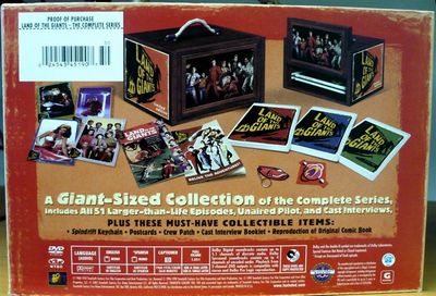 After their sub-orbital space craft is drawn into a space warp the passengers and crew of the Spindrift crash into a planet where everything is 12 times its normal size!Disc 1 Side A:**The Crash**Ghost Town**Framed**UndergroundDisc 1 Side B:**Terror-Go-Round**The Flight PlanDisc 2 Side A:**Manhunt**The Trap**The Creed**Double-CrossDisc 2 Side B:**The Weird World**The Golden CageDisc 3 Side A:**The Lost Ones**Brainwash**The Bounty Hunter**On A Clear Night You Can See EarthDisc 3 Side B:**Deadly Lodestone**Night of ThrombeldinbarDisc 4 Side A:**Seven Little Indians**Target: Earth**Genius At Work**Return of IniduDisc 4 Side B:**Rescue**SabotageDisc 5 Side A:**Shell Game**The Chase**The Mechanical Man**Six Hours To LiveDisc 5 Side B:**The Inside Rail**Deadly PawnDisc 6 Side A:**The Unsuspected**Giants and All That Jazz**Collector's Item**Every Dog Needs A BoyDisc 6 Side B:**Chamber Of Fear**ComebackDisc 7 Side A:**The Clones**A Place Called Earth**Land of The Lost**Home Sweet HomeDisc 7 Side B:**Our Man O'Reilly**NightmareDisc 8 Side A:**Pay The Piper**The Secret City Of Limbo**Panic**The Deadly DartDisc 8 Side B:**Doomsday**A Small WarDisc 9 Side A:**The Marionettes**Wild Journey**Graveyard of Fools**Unaired PilotDisc 9 Side B:**GARY CONWAY INTERVIEWS:*The Series' Lasting Effects*The Influence of Gulliver's Travels on the Show*Fight Scene in the Cage*Humerous Moments*A Couple Memorable Episodes*Memories of Irwin**DON MARSHALL INTERVIEWS:*Acting and the Actors on the Show*Memories of Kurt Kasznar*Memories of Cast Members and the Director*Popularity of the Show in England*Presentation Reel*Special Effects Shots (no audio)**IRWIN ALLEN HOME VIDEOS (no audio):*Meeting*Irwing Directing Actors in Interior Sets*Irwing Directing Actors in Exterior Sets*Rope Climbing*Escape Through the Tunnel*Glass Prison*Escape from the Giant Hand*Irwin Directing Forest Scene**STEFAN ARNGRIM INTERVIEWS:*Irwin's Direction*Dogs*The Mechanical Hand*Directors Harry Harris |
