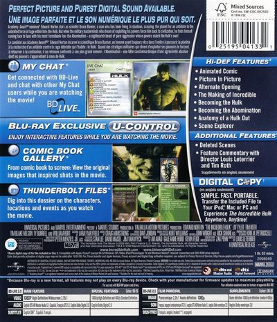 Academy Award® nominee Edward Norton stars as scientist Bruce Banner, a man who has been living in shadows, scouring the planet for an antidote to the unbridled force of rage within him: the Hulk. But when the military masterminds who dream of exploiting his powers force him back to civilization, he finds himself coming face to face with his most formidable foe: the Abomination – a nightmarish beast of pure aggression whose powers match the Hulk's own! |