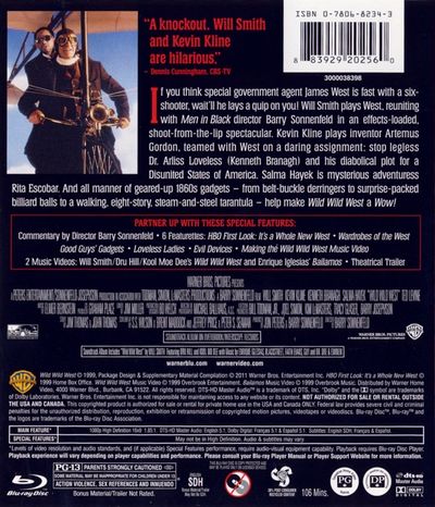 If you think special government agent James West is fast with a six-shooter, wait'll he lays a quip on you! Megahit star Will Smith plays West, reuniting with Men in Black director Barry Sonnenfeld in an effects-loaded, shoot-from-the-lip spectacular. Kevin Kline plays fellow agent and crackerjack inventor Artemus Gordon, teamed with West on a daring assignment: Stop legless Dr. Arliss Loveless (Kenneth Branagh) and his diabolical plot for a Disunited States of America. Salma Hayek is mysterious adventuress Rita Escobar. And all manner of geared-up 1860s gadgets - from belt-buckle derringers to surprise-packed billiard balls to a walking, eight-story, steam-and-steel tarantula - help make Wild Wild West a wow! |
