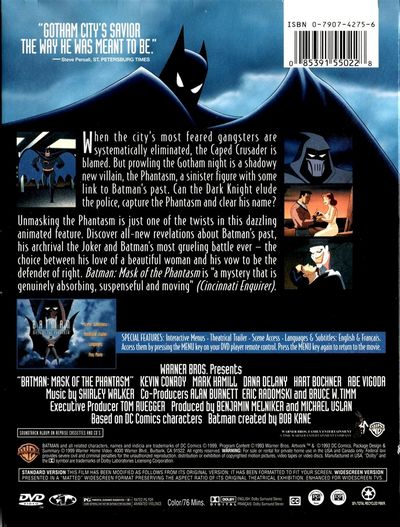 When the city's most feared gangsters are systematically eliminated, the Cape Crusader is blamed. But prowling the Gotham night is a shadowy new villain, the Phantasm, a sinister figure with some link to Batman's past. Can the Dark Knight elude the police, capture the Phantasm and clear his name?Unmasking the Phantasm is just one of the twists in this dazzling animated feature. Discover all-new revelations about Batman's past, his archrival the Joker and Batman's most grueling battle ever - the choice between his love of a beautiful woman and his vow to be the defender of right. Batman: Mask of the Phantasm is a mystery that is genuinely absorbing , suspenseful and moving (Cincinnati Enquirer). |