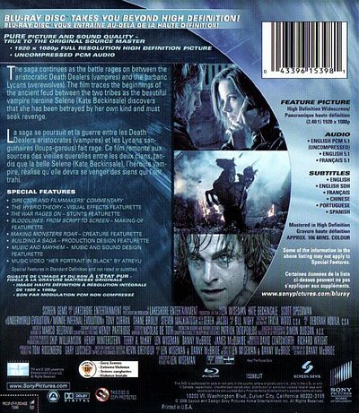 The Saga continues as the battle rages on between the aristocratic Death Dealers (vampires) and the barbaric Lycans (werewolves). The film traces the beginnings of the ancient feud between the two tribes as the beautiful heroine Selene (Kate Beckinsale) discovers that she has betrayed her own kind and must seek revenge. |