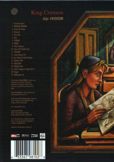 In keeping with King Crimson's tradition of using new technologies, Robert Fripp and Discipline Global Mobile present the new King Crimson release, Deja Vrooom, designed to be the world's first user-tailored musical experience on DVD, featuring concert footage from Tokyo, Japan performances of the '90s line-up of King Crimson.This disc also includes seven camera angles during Vrooom Vrooom, seven Dolby Surround mixes to choose from, two camera angles available during Frame By Frame, Three Of APerfect Pair, Indiscipline and People and an interactive musical game, in which the player may compile their own version of 21st Century Schizoid Man by choosing rhythm sections, vocal tracks and soloists from any of various incarnations of King Crimson.Includes:1. Circular Improv2. Vrooom Vrooom3. Frame By Frame4. Dinosaur5. One Time6. Red7. B'Boom8. Thrak9. Matte Kudasai10. Three Of A Perfect Pair11. Vrooom12. Coda: Marine 47513. Sex Sleep Eat Drink Dream14. Elephant Talk15. Indiscipline16. Talking Drum17. Larks' Tongues In Aspic Part II18. People19. Walking On Air20. 21st Century Schizoid Man
