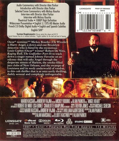Oscar nominee Mickey Rourke (The Wrestler) is Harry Angel, a down-and-out Brooklyn detective who is hired by the mysterious Louis Cyphre (Oscar winner Robert De Niro, Raging Bull,The Godfather: Part II) to track down a singer named Johnny Favorite on an odyssey that will take Angel through the desperate streets of Harlem, the smoke-filled jazz clubs of New Orleans, and the swamps of Louisiana and its seedy underworld of voodoo, in this cult thriller that is at once eerily thrilling, darkly sensual and completely unforgettable. |