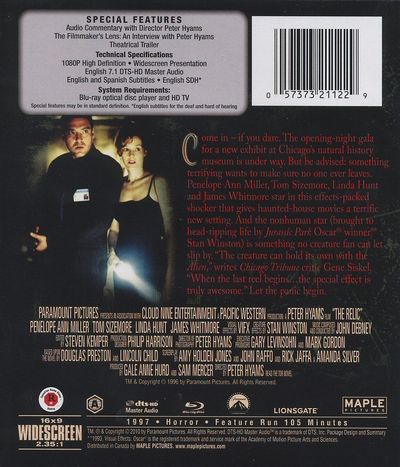 Come in - if you dare. The opening-night gala for a new exhibit at Chicago's natural history museum is under way. But be advised: something terrifying wants to make sure no one ever leaves. Penelope Ann Miller, Tom Sizemore, Linda Hunt and James Whitmore star in this effects-packed shocker that gives haunted-house movies a terrific new setting. And the non-human star (brought to head-ripping life by Jurassic Park Oscar® winner Stan Winston) is something no monster fan can let slip by. Let the panic begin. |
