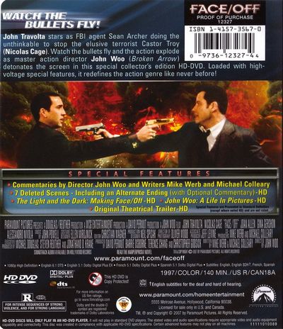 John Travolta stars as FBI agent Sean Archer doing the untinkable to stop the elusive terrorist Castor Troy (Nicolas Cage). Watch the bullets fly and the action explode as master action director John Woo (Broken Arrow) detonates the screen in this special collector's edition HD-DVD. Loaded with high-voltage special features, it redefines the action genre like never before! |