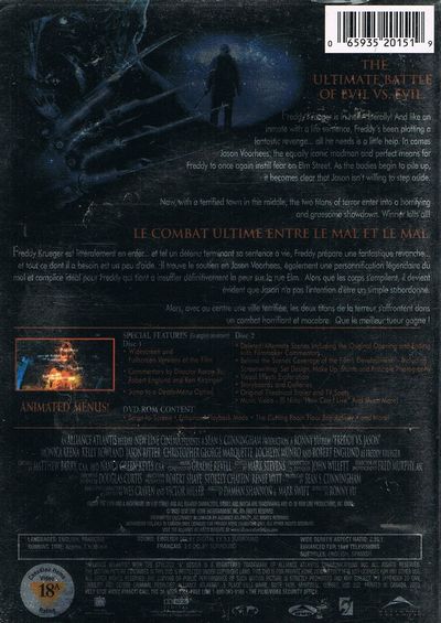 Freddy Krueger is in hell - literally! And like an inmate with a life sentence, Freddy's plotting a fantastic revenge... all he needs is a little help In comes Jason Voorhees, the equally iconic madman and perfect means for Freddy to once again instil fear on Elm Street. As the bodies begin to pile up, it becomes clear that Jason isn't willing to step aside. Now, with a terrified town in the middle, the two titans of terror enter into a horrifying and gruesome showdown. Winner kills all! Freddy Krueger est littéralement en enfer... et tel un détenu terminant sa sentence à vie Freddy prépare une fantastique revanche... et tout ce dont il a besoin est un peu d'aide. Il trouve le soutien en Jason Woorhees, également une personnification légendaire du mal et complice idéal pour Freddy qui tient à insuffler définitivement la peur sur la rue Elm. Alors que les corps s'empilent, il devient évident que Jason n'a pas l'intention d'être un simple subordonné.Alors, avec au centre une ville terrifiée, les deux titans de la terreur s'affrontent dans un combat horrifiant et macabre. Que le meilleur tueur gagne