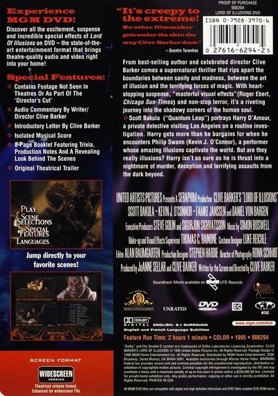 From best-selling author and celebrated director Clive Barker comes a supernatural thriller that rips apart the boundaries between sanity and madness, between the art of illusion and the terrifying forces of magic. With heart-stopping suspense, "masterful visual effects" (Roger Ebert, 'Chicago Sun-Times') and non-stop terror, it's a riveting journey into the shadowy corners of the human soul.Scott Bakula ("Quantum Leap") portrays Harry D'Amour, a private detective visiting Los Angeles on a routine investigation. Harry gets more than he bargains for when he encounters Philip Swann (Kevin J. O'Connor), a performer whose amazing illusions captivate the world. But are they really illusions? Harry isn't so sure as he is thrust into a nightmare of murder, deception and terrifying assaults from the dark beyond.